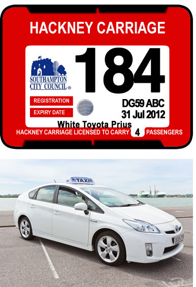 It is very unfortunate that a percentage of Private Hire drivers in Southampton act as if they are Hackney Carriages, picking up passengers wherever they wish. This is not the case, if you wish to travel safely, in an insured car always remember that only the white licensed Hackney Carriage Taxis in Southampton are lawfully allowed to pick you up from the street. For your safety, look for the official red licensed Hackney Carriage plate and the taxi sign on the roof on the white taxi's in around and the city: